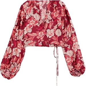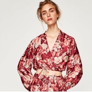 Zara Crop Wrap Front Tie Floral Blouse with Puffy Sleeves Size S