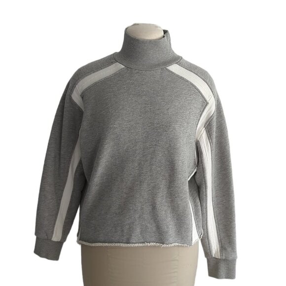 This is a grey and white colourblock brushed terry cropped mock neck sweatshirt by Zara Trafaluc.