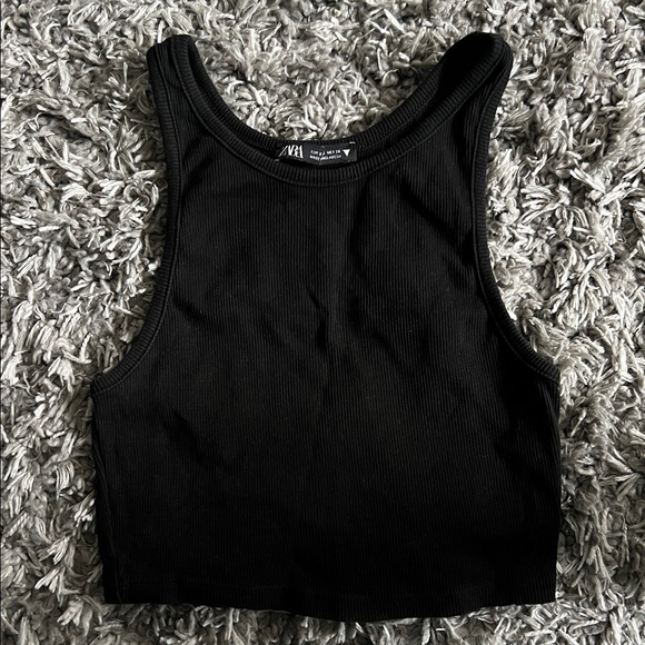 Zara cropped racer tank Size small Black Good condition. As seen