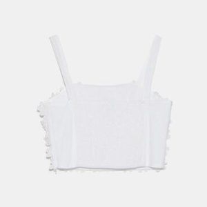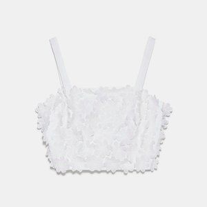 Zara cropped textured weave poplin tank top with 3D floral applique. The perfect chic elevated basic for summer!
