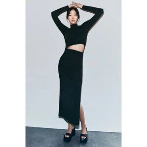 Zara Cut Out Long Sleeve Midi Maxi Dress Ruched Drape Sexy Bodycon Weddig Guest