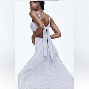 Zara Cut Out Pleated Midi Long Dress Light Blue Size Medium