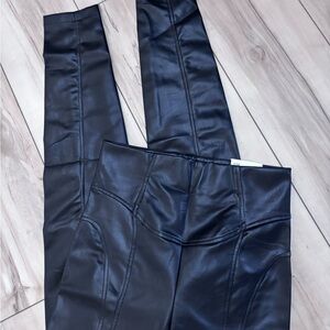 Stylish dark faux leather leggings. Ideal for modern outfits.