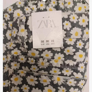 Zara Dark Grey With Daisies High Rise Button Fly Shorts Size 0