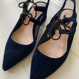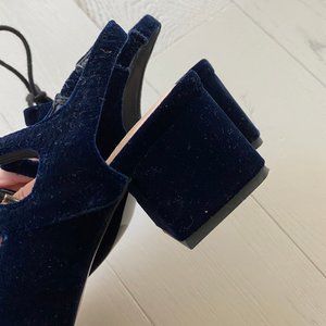Zara Dark Navy Blue Velour Slingbacks, Sz 6