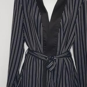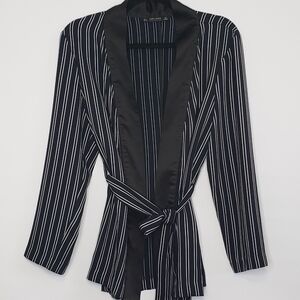 Zara Dark Navy White Striped Women's Relaxed Smoking Jacket Blazer Large