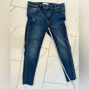 These Zara Denim jeans are skinny and cropped with a fair amount of stretch to them.