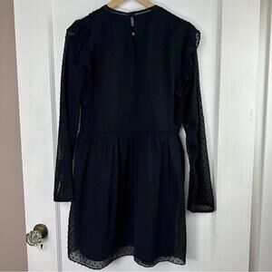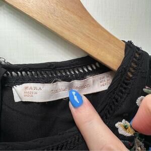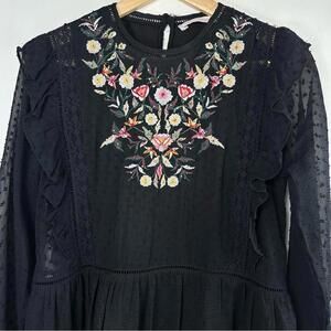 Zara Dotted Mesh Beaded Floral Embroidered Mini Dress with Ruffle