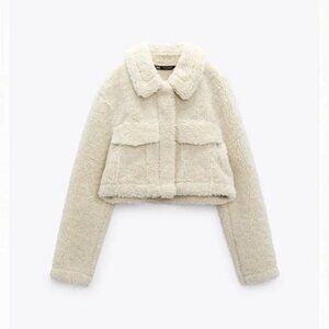 Zara Double Faced Sherpa Teddy Soft Jacket Ecru White Size XS
