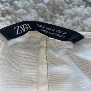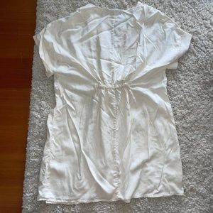 Cream colour Mini dress Cinch tie waist Loose fitting Buttons V neck Short sleeve