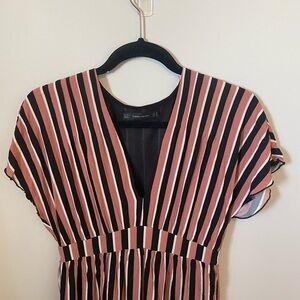 Zara Dress pink black striped GUC minor flaw where side zipper is (see last picture). Perfect summer patio dress or wedding dress!