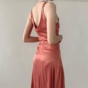 Incredibly beautiful ZARA, peach deep neckline maxi satin dress. Flowing A-line dress with a plunging V-neckline and wide straps.