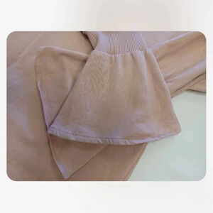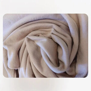 Dusty rose in color, this tunic features flutter cuffs and a crew neck. It's a mini with stretch available. Very light blue marks on left sleeve (indicated)