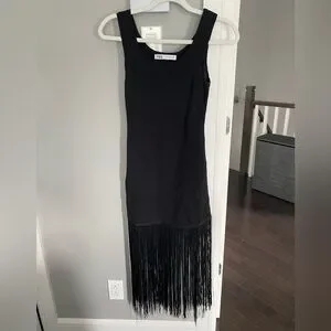 Zara Elegant Black Midi Dress with Fringe