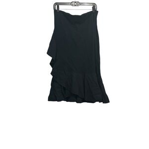 Sophisticated black midi skirt with ruffle detail. Perfect for any occasion.