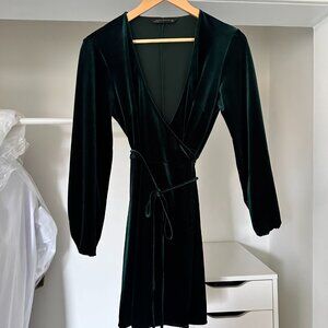 Zara - Emerald Green Mini Velvet Wrap Dress - Size S