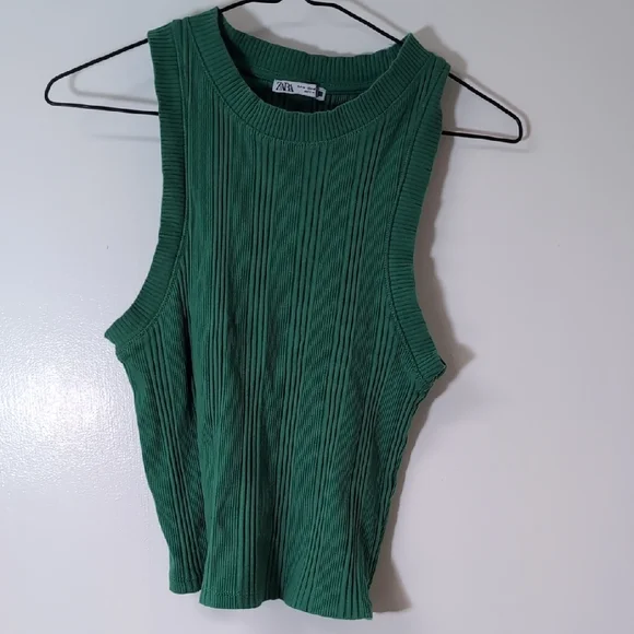 Stylish emerald ribbed tank from Zara. Ideal for versatile wear. Excellent Used Condition