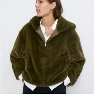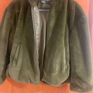 Zara FAUX FUR JACKET-MID KHAKI/green/olive - XS