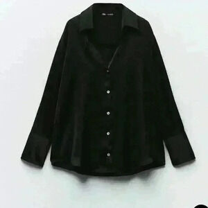 Zara FLOWY SATIN EFFECT Long Sleeve Shirt size M