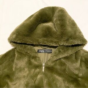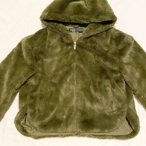 Zara Faux Fur Plush Zip Hoodie Teddy Jacket Size Medium