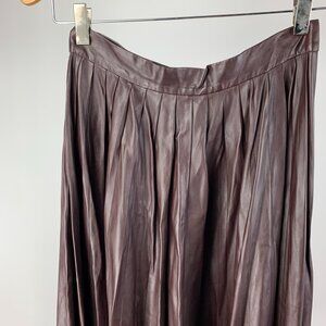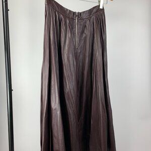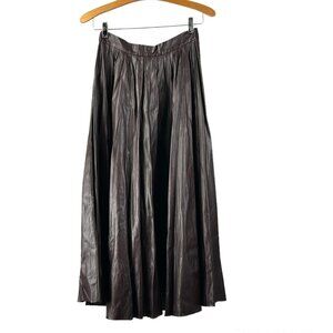 Zara Faux Leather Brown Pleated Full Maxi Skirt