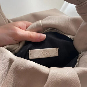 Zara Faux Leather Knotted Tie Shoulder Bag Cream