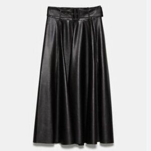 Zara Faux Leather Skirt With Belt Black Blogger Fav Size Large