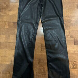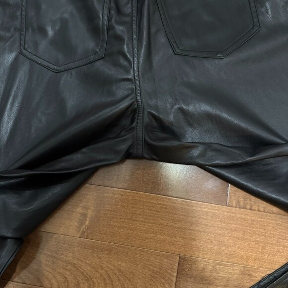 tylish Zara black faux leather pants featuring a straight-leg cut and a sleek finish. Designed with front and back pockets, belt loops, and a button-zip closure. These pants offer a chic, modern edge that pairs well with blazers, sweaters, or heels for a night out.