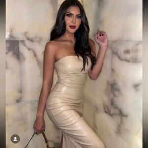 Zara Faux Leather Strapless Midi Dress Beige Blogger Fav Size Small