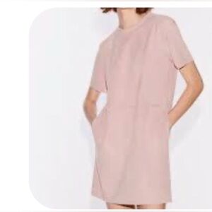 Super cute Zara faux suede with faux leather trimmed pockets midi dress in size US S.