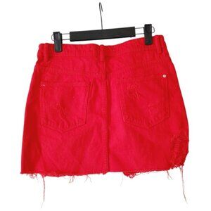 Zara Ferrari Red Y2K Bimbo Brat Girl Summer Distressed Denim Mini Skirt S