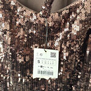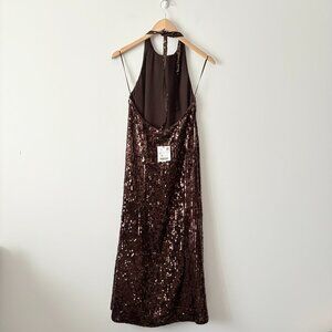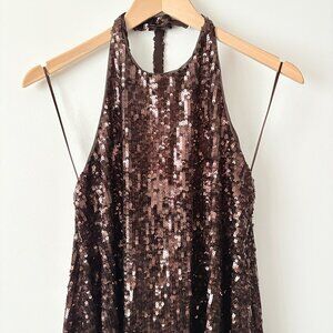 Zara Festive Sequin Halter Maxi Dress Brown NWT Size Small