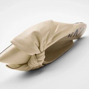 Zara flat leather slip-on shoes with ribbon ties. Pointed toe. Genuine leather. Technical insole foam.