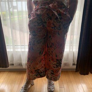 Zara Floral Cotton Pants with Tie Waist – Size S