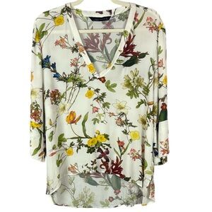 Zara Floral Cream and Yellow Relaxed Blouse Size Large