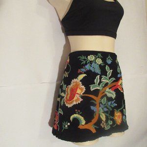 Zara Floral Embroidered Black Lined Miniskirt - XL