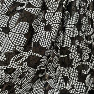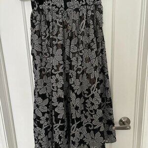This skirt is very on trend and unique. It is lined, but still shows skin in the right way since there are sheer areas. It has an elastic waist on the back and a side zipper. I wore this skirt a couple of times but have not reached for it for while, so looking to part with it now.