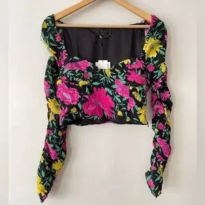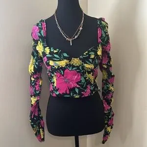 Zara Floral Long Sleeve Cropped Blouse - NWT