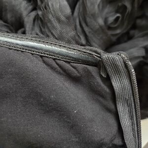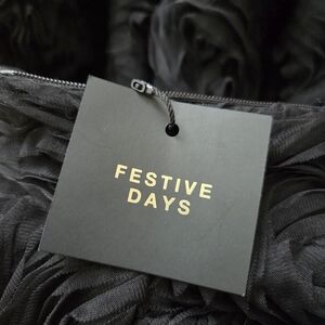 Strapless straight neck dress. Flower-shaped textured fabric detail. Balloon / bubble hem. Interior elastic finish on upper bodice. Side boning. Invisible back zip closure.