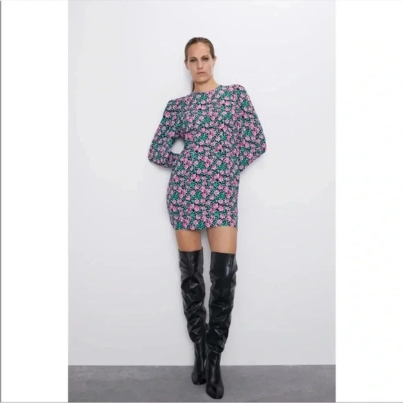 Fabric has a little give but not spandexy. Has an invisible side zipper