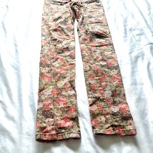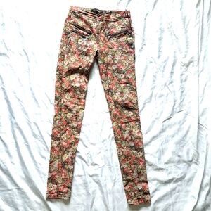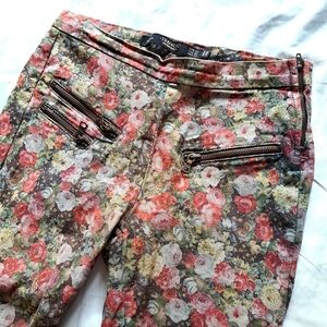 Zara | Floral Multi color jean jegging skinny with bronze zipper accents