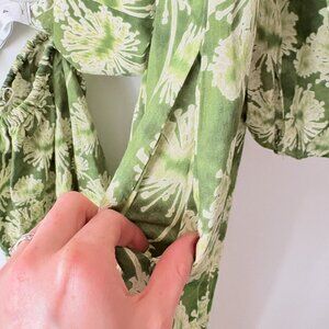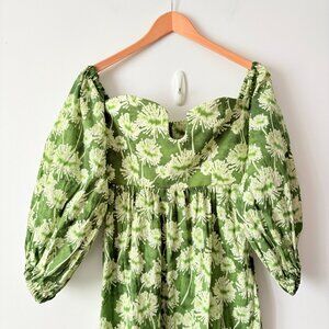 Zara Floral Off The Shoulder Cotton Poplin Maxi Dress Green Size Small