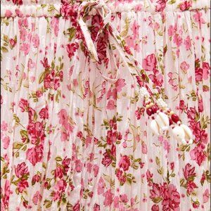 Zara PRINTED Maxi SKIRT W/ BEADS High Waist Drawstring Pink/White XS High-waist skirt. Elastic waistband featuring drawstrings with beads and seashells. Lining. 5598/049/620 Blogger Favorite