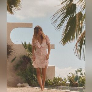 Zara Floral Pink Short Dress with Peter Pan Collar – Size L