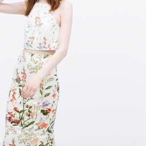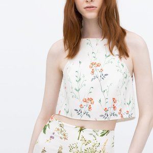NWOT Zara floral print crop top. Made in a lightweight fabric with delicate floral print. The top features thin cami straps, a flattering square neck and cropped length.