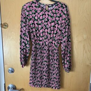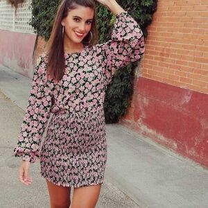 Zara Floral Print Elastic Skirt Long-sleeve Dress