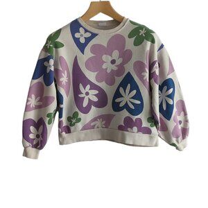 Zara Floral Print Puff Sleeve Sweatshirt