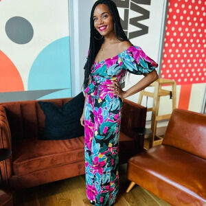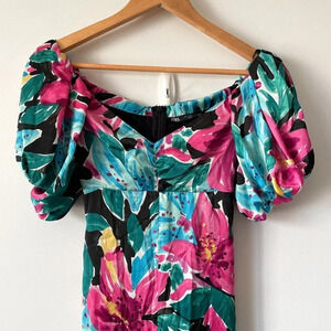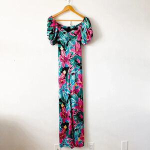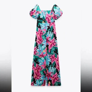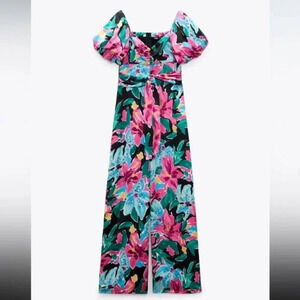Zara Floral Print Satin Like Jumpsuit Puff Sleeve Size Medium Blogger Fave