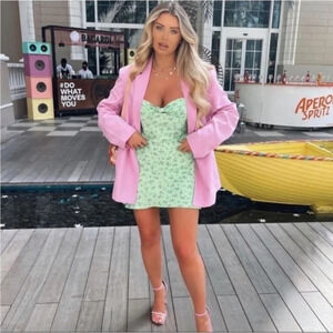 Zara Floral Satin Effect Knot Front Bustier Mini Dress Green Size Medium