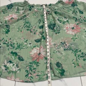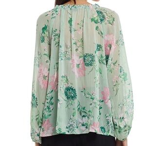 Zara Floral Sheer Blouse in Mint Green & Pink Ruffle Collar with Tie Flowy Fit